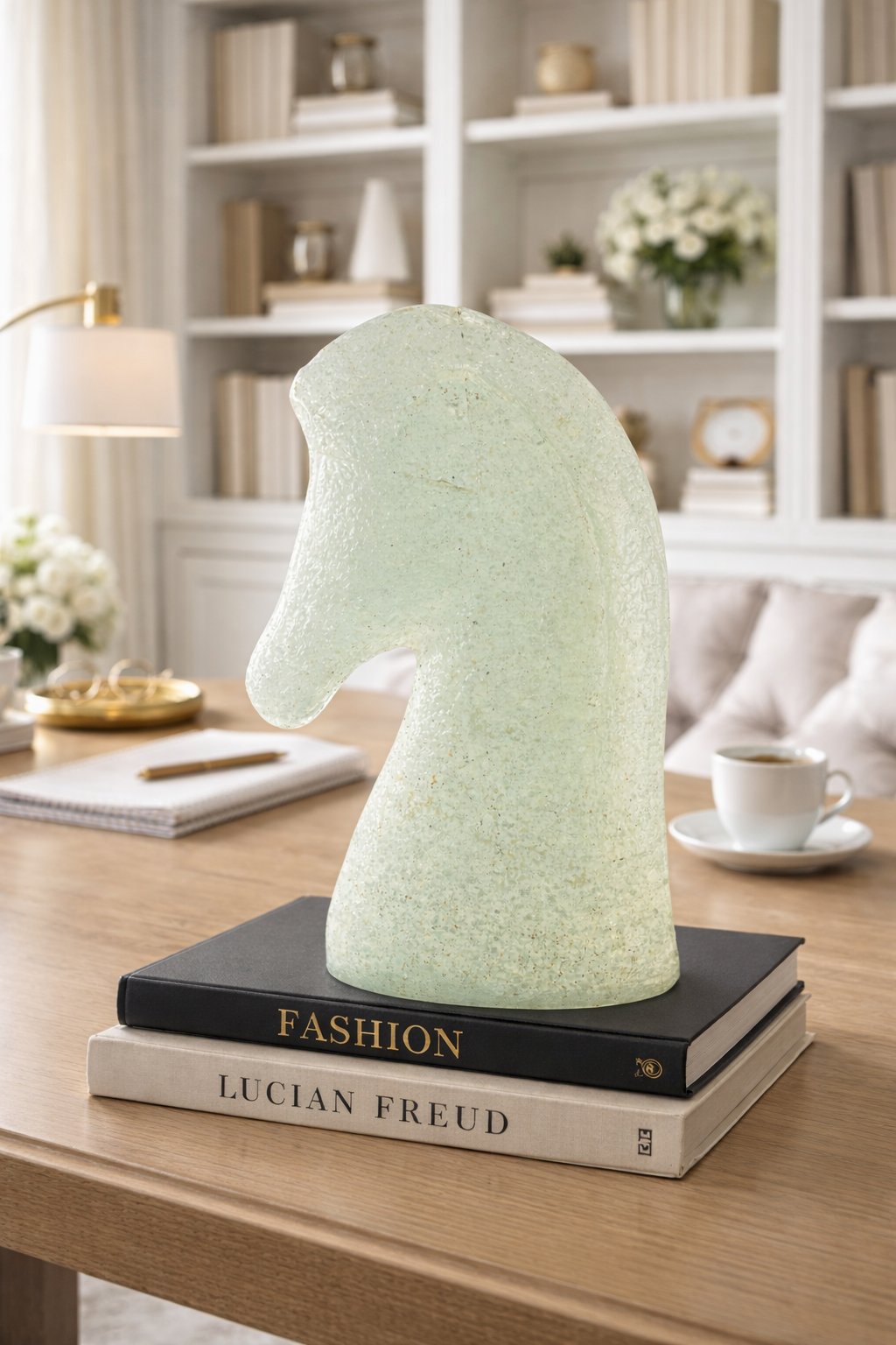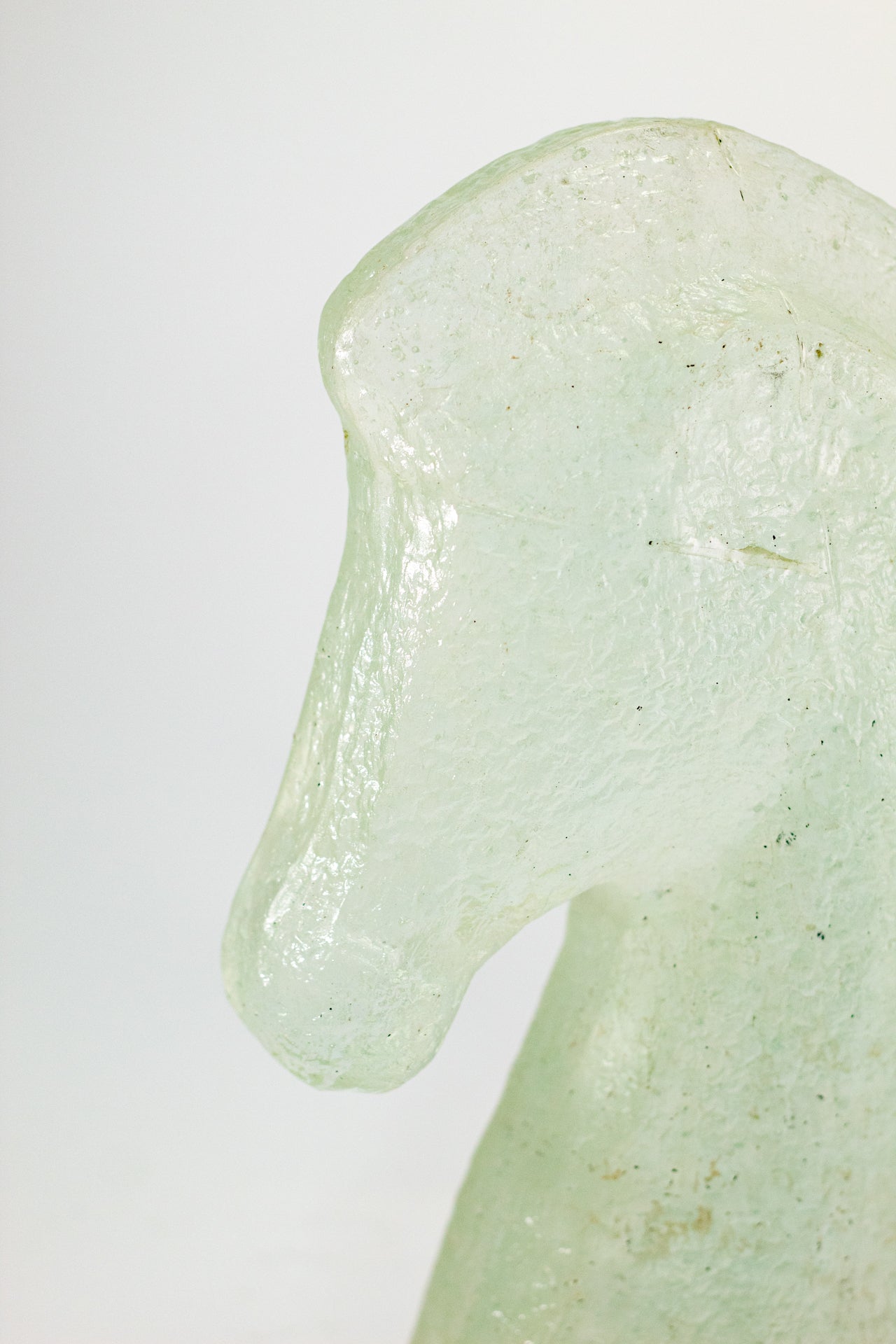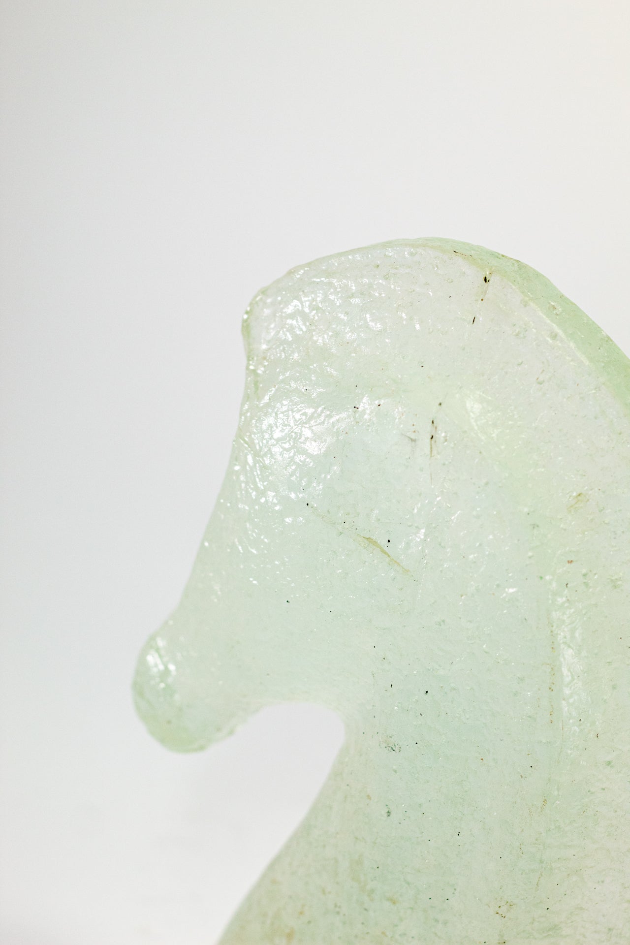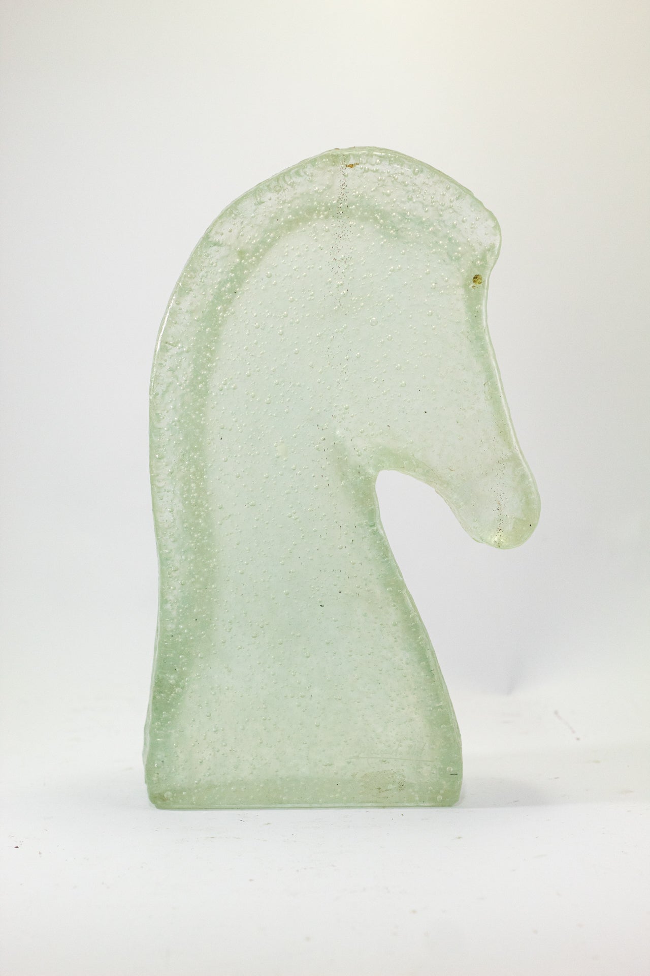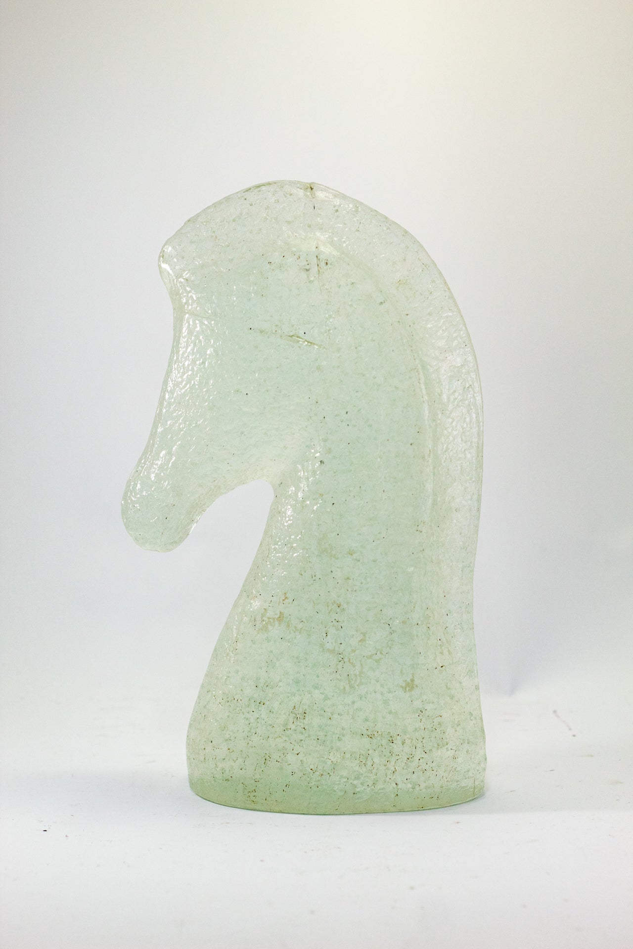 Cabeza de Caballo es una pieza que proyecta autoridad y nobleza a través de la técnica de casting de vidrio fundido. A diferencia de otras piezas, aquí el cristal abandona su transparencia total para adoptar una textura interna rugosa y orgánica, similar a la piedra esculpida por el tiempo, pero con el brillo sutil que solo el vidrio puede ofrecer. Su diseño minimalista captura la fuerza del perfil equino, transformando la potencia del animal en un objeto de diseño atemporal. Es una escultura compacta pero de gran peso visual, ideal para un escritorio o una repisa principal donde se busque proyectar carácter, determinación y un gusto refinado por las piezas de autor que desafían los moldes convencionales.