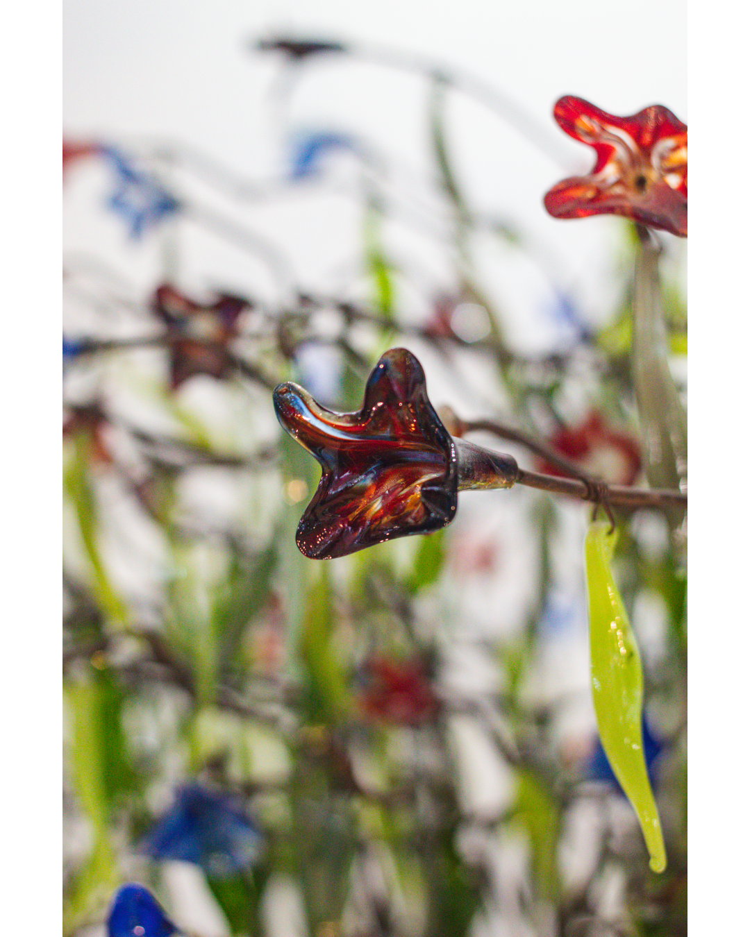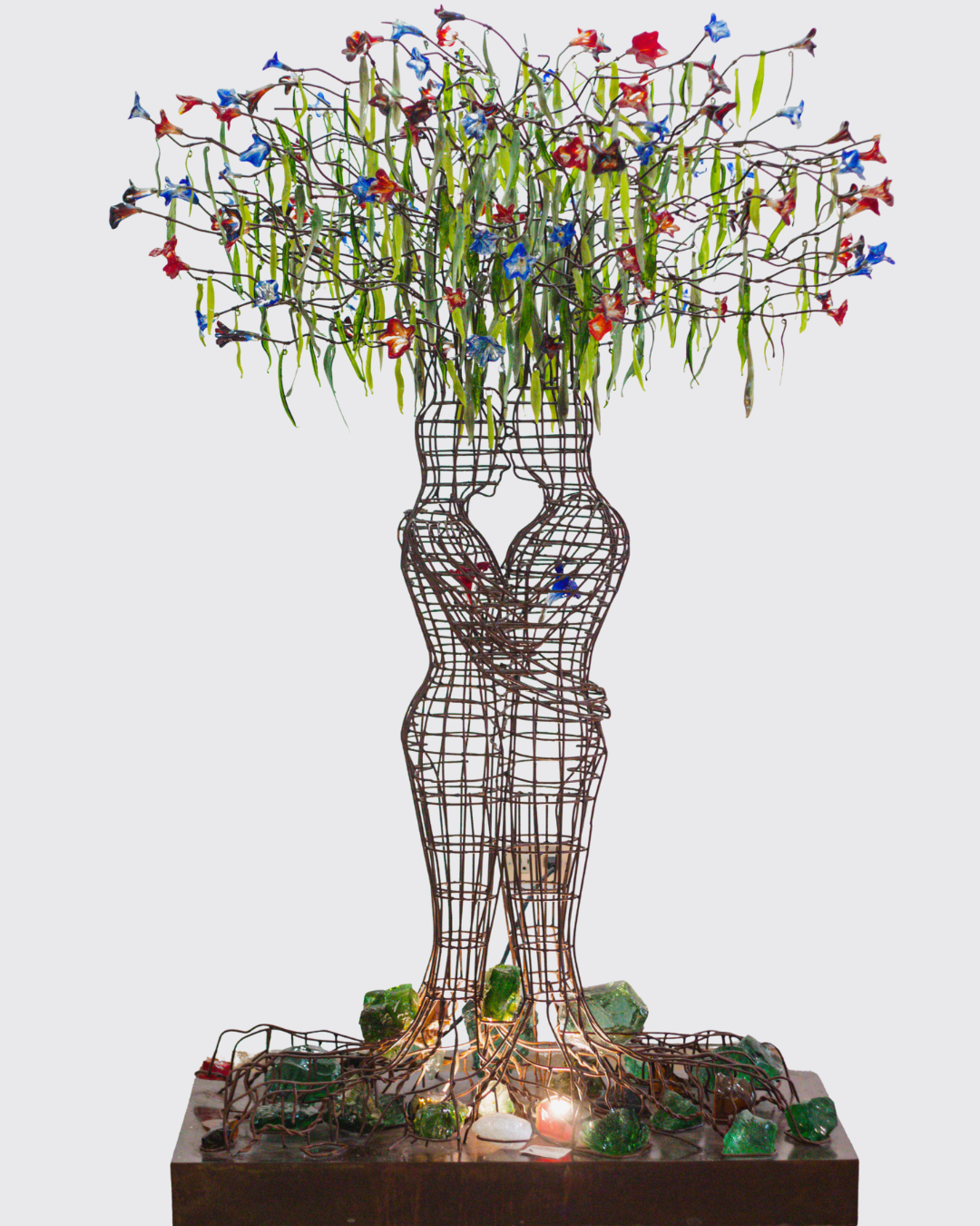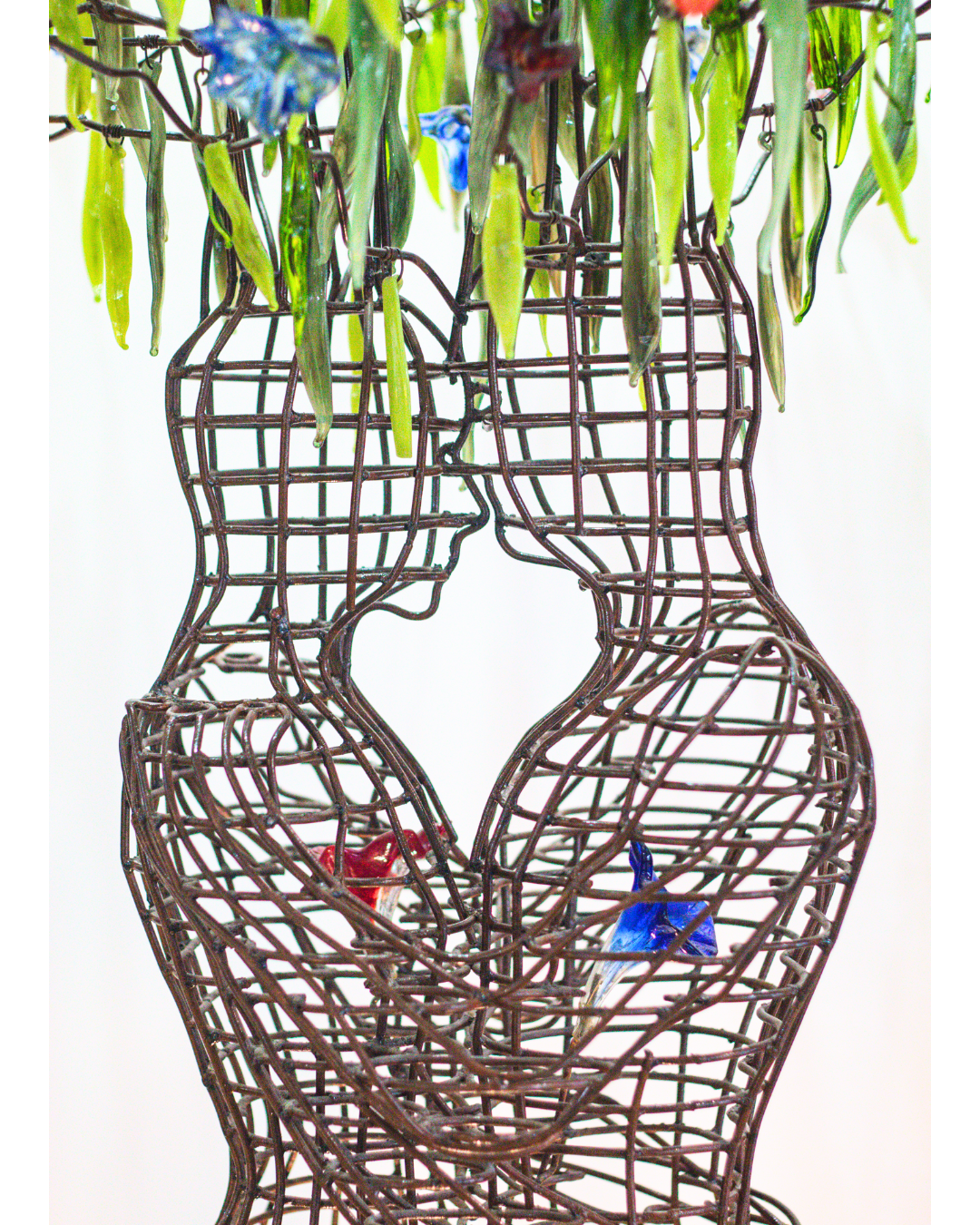 Forjdo iron sculpture with colored artistic glass -blown glass details